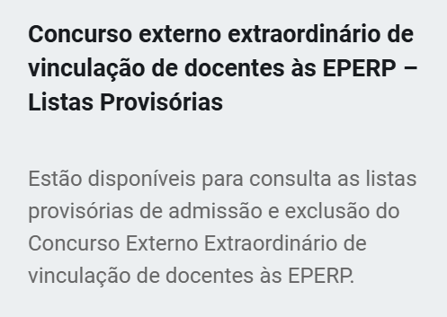 Concurso externo extraordinário de vinculação de docentes às EPERP - Nota Informativa